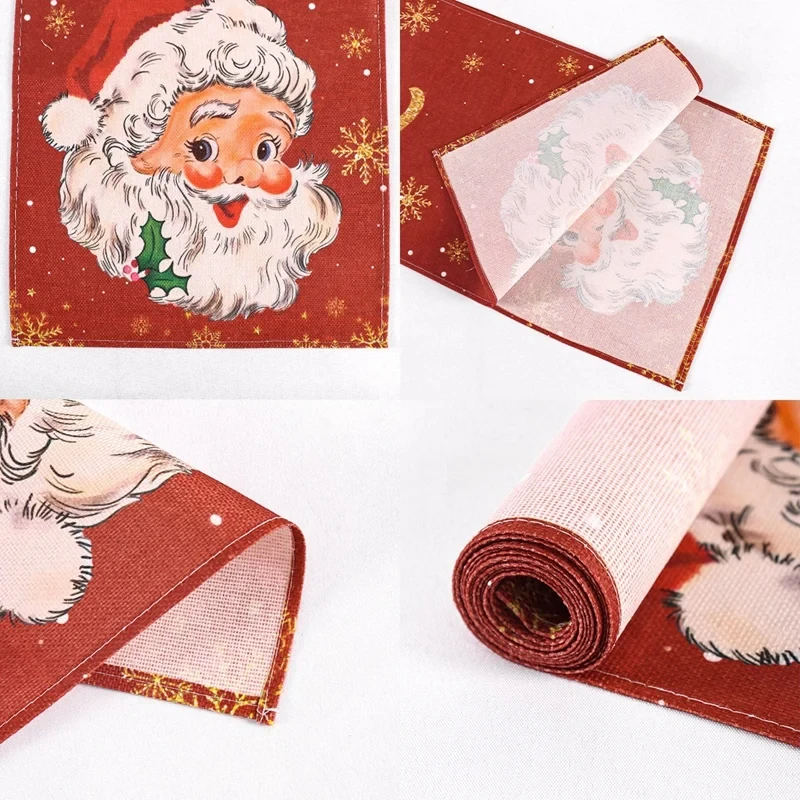 Add a touch of holiday cheer to your dining table with this charming Christmas table flag! Made from high-quality fabric, it features vibrant festive designs like Santa Claus, reindeer, snowflakes, and Christmas trees – perfect for creating a warm and joyful atmosphere.